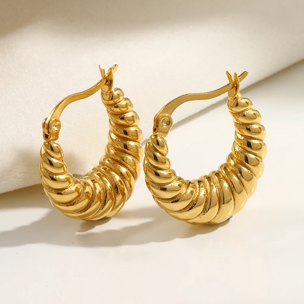 E.B.belle 316L Stainless Steel Unique Texture Circle Gold Statement Earring Chunky Croissant Hoop Earrings for Women